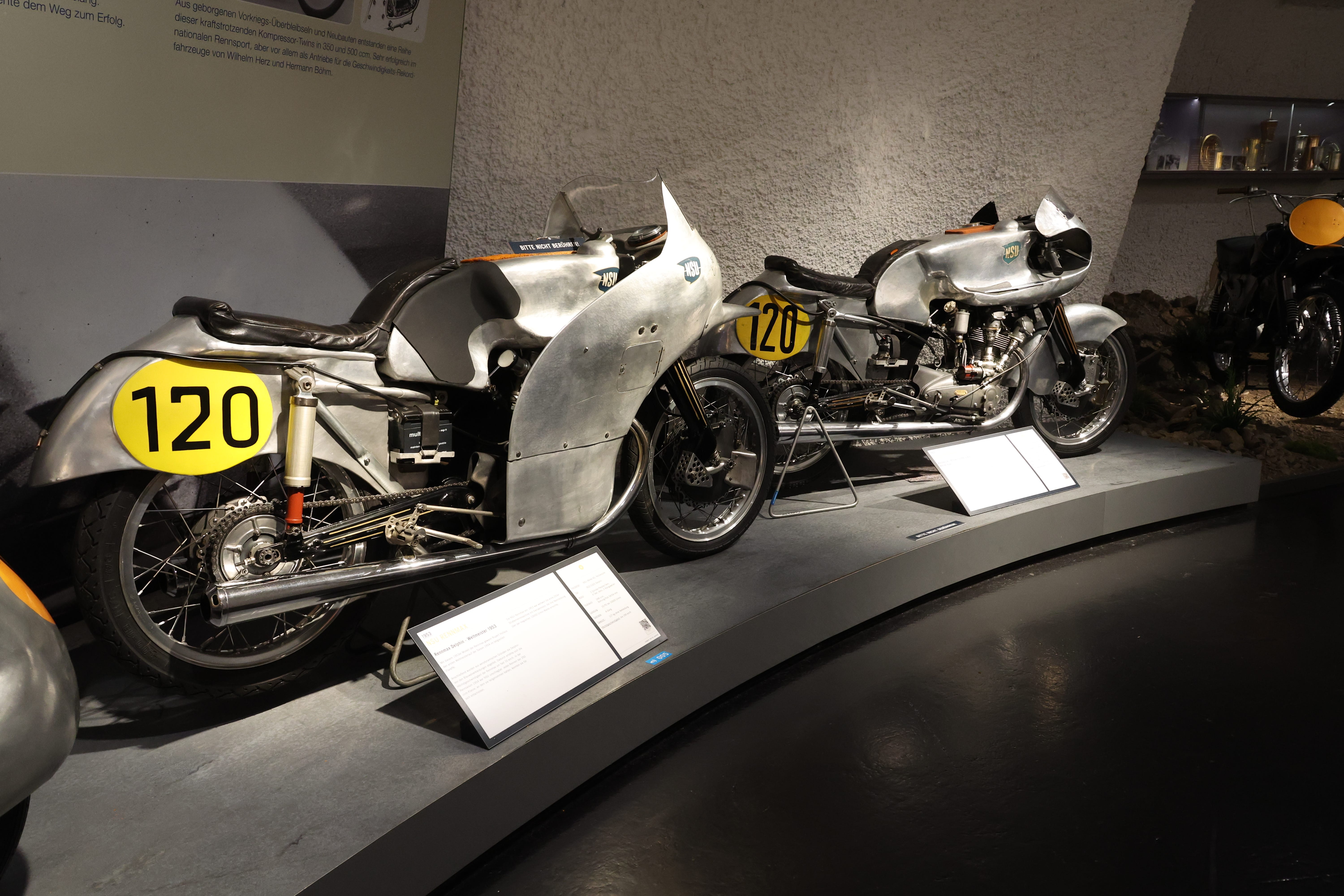 Founded in 1956, the Deutsches Zweirad- und NSU-Museum, known since 2022 as the Deutsches Motorradmuseum DEMOMU, occupies an historic building in the centre of the historic town. One of Germany’s largest public collections of motorcycles and bicycles, it houses approximately 400 exhibits across nearly 2000 square metres. Displaying examples from 140 motorcycle brands and 45 bicycle manufacturers, the museum charts the evolution of personal mobility from the late 19th century to the present. With help from benefactors, notably Dieter Mutschler, one of the world’s most ardent motorcycle collectors, the museum has consistently expanded both its permanent holdings, and its exhibition programming.